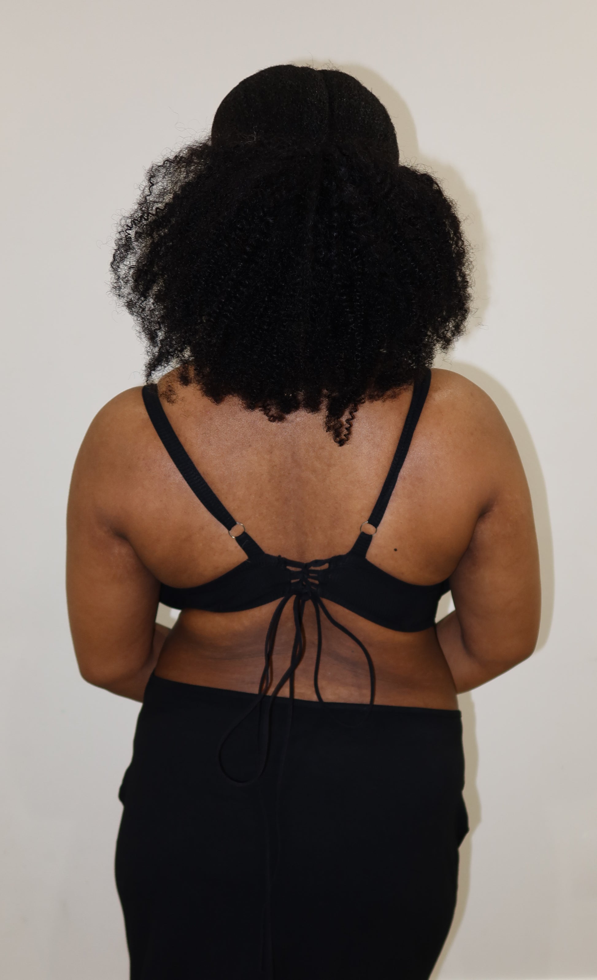 The back cut-out is the perfect height to sit just over your back-rolls (if you have them) and shows off your waist and shoulders beautifully in a way I've never been able to before with massive bras.